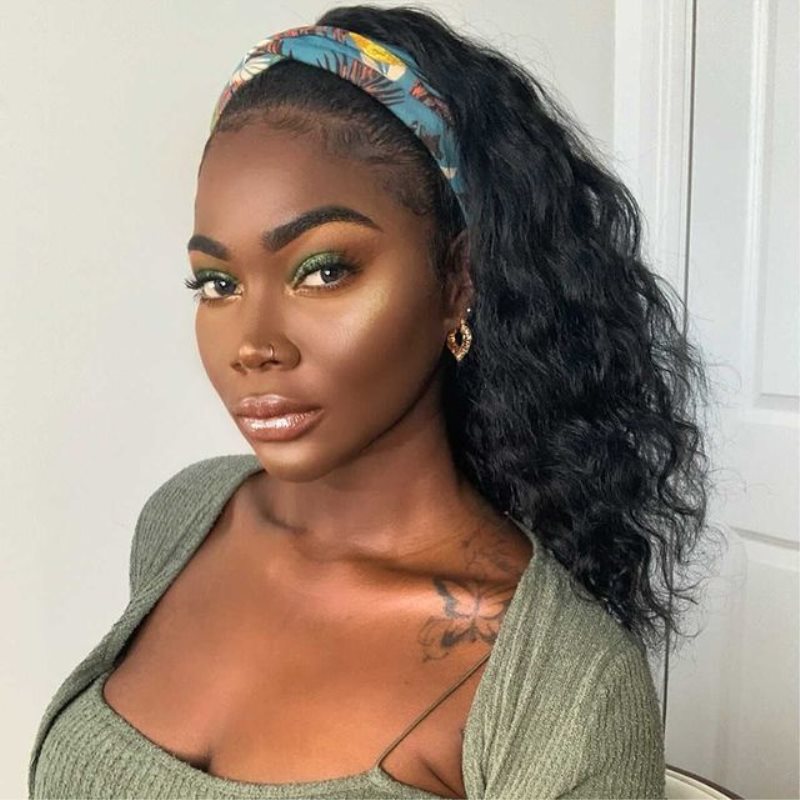 Shantania - Loose Wave Curls Human Hair Drawstring Headband Wigs - HBW040